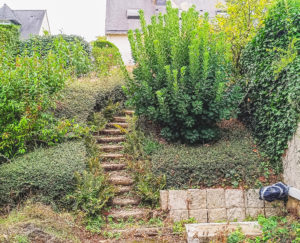 5 novembre 2025Conseillés par des voisins, des propriétaires de Cesson-Sévigné ont fait appel à ESNAULT DESIGN & PAYSAGE pour répondre à leur problématique d’un terrain en forte pente, limité à une simple allée entourée d’une végétation envahissante. De plus, leur ancienne terrasse en béton était dégradée et ne permettait pas un bon écoulement des eaux de pluie.