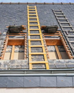 Pour l’isolation des rampants sous toiture, LA MAISON QUI RESPIRE est intervenue en découvrant partiellement les ardoises afin de positionner l’isolant par système ISOSAC®. Composée d’un pare-pluie, d’un pare-vapeur et d’une membrane de décompression, cette invention permet d’insuffler de la ouate de cellulose entre la toiture et l’habillage intérieur. Un gain de temps et de confort pour les propriétaires.